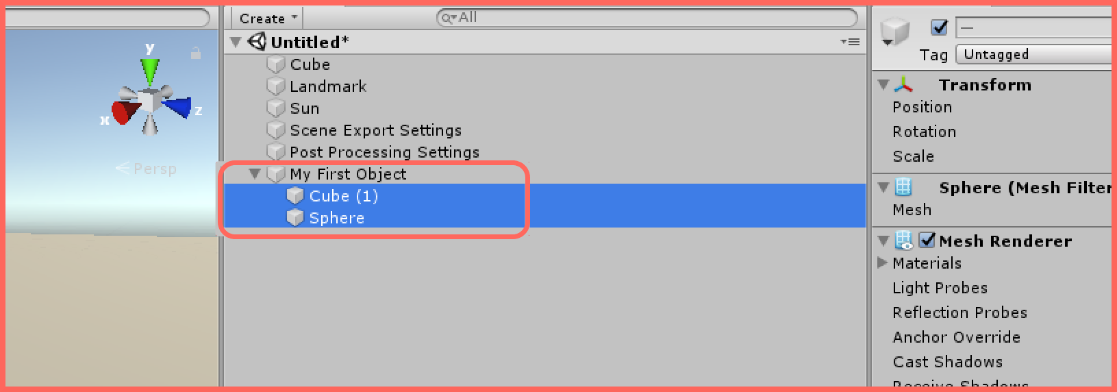 Now drag the cube and the sphere into this object.