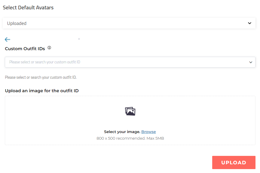 Please note that only outfits that use your [custom uploaded content](https://docs.breakroom.tech/advanced-tutorials/uploading-your-own-virtual-clothing) or content provided by Breakroom will appear in the Uploaded category. If you create an outfit featuring third-party creator content purchased in the [Shop](https://docs.breakroom.tech/getting-started/customizing-your-avatar/using-the-sinewave-shop), that outfit will be excluded from the list.