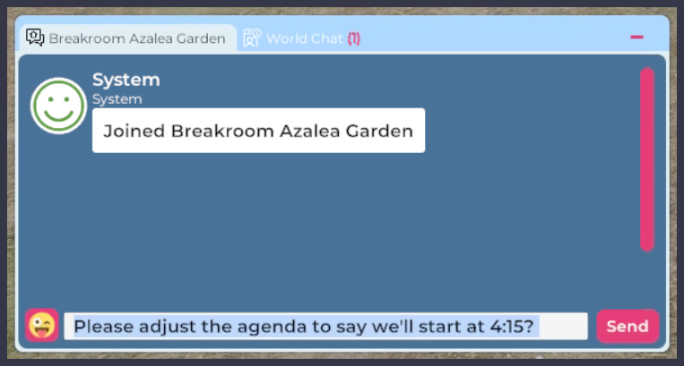 To paste text into a Breakroom World Stream session, follow these steps.
